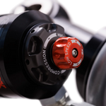 Type III anodization prevents corrosion and wear of the 2.5-inch aluminum bodies, and external reservoirs efficiently dissipate heat by increasing internal oil capacity. Cooler shocks work better, longer. The reservoirs feature Dual Speed Compression (DSC) adjusters; strategically mounted to eliminate interference with aggressive tires at full lock.